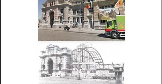 Comparaison de la Gare de Tournai de nos jours et pendant la seconde guerre mondiale.